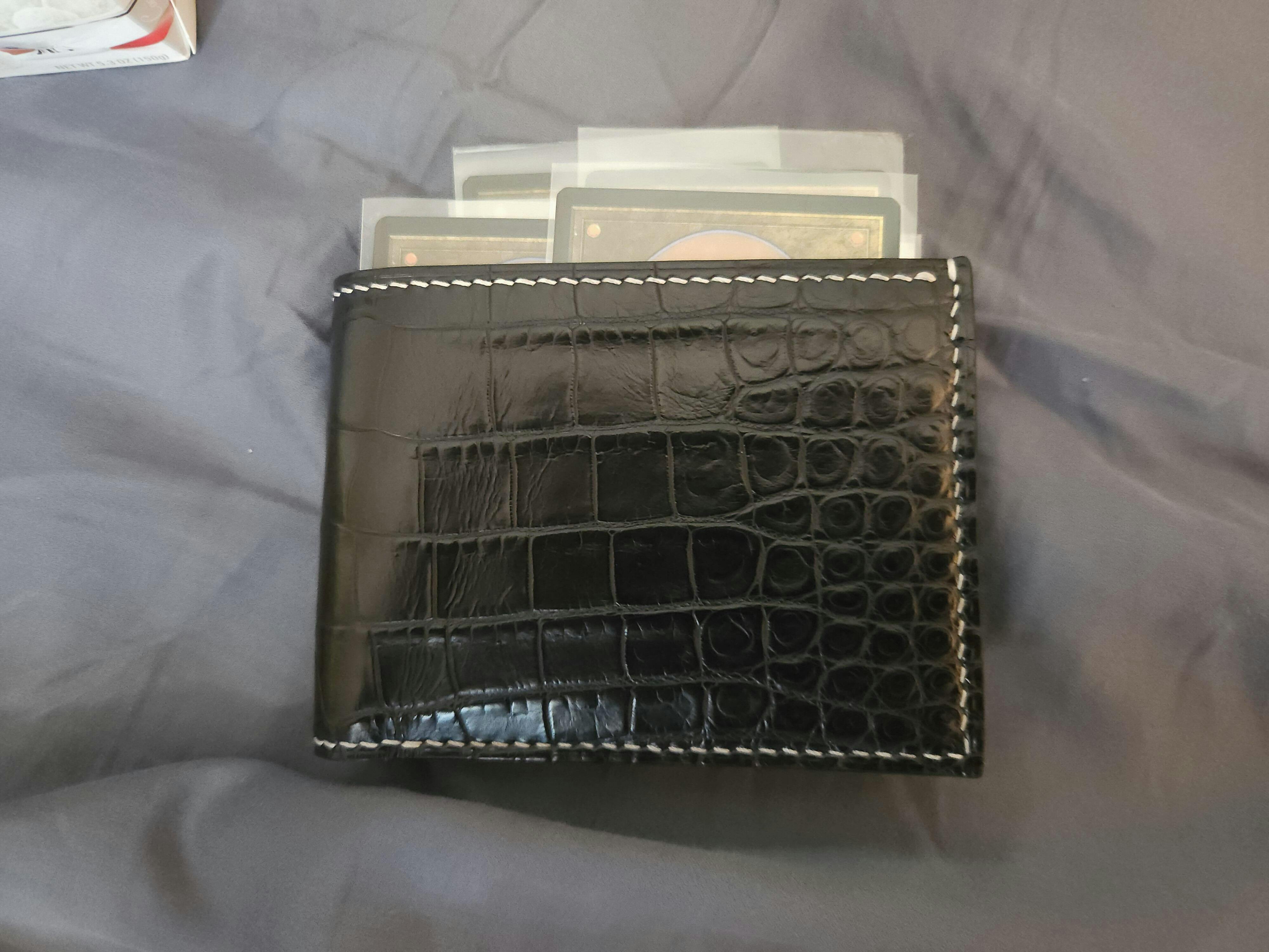 Elevate your everyday carry with a men’s exotic leather wallet crafted in genuine crocodile . Each piece is 100% hand-stitched (no sewing machine) using the durable saddle stitch, with clean cuts and smooth burnished edges for long-lasting elegance. Slim, functional, and built to age beautifully.